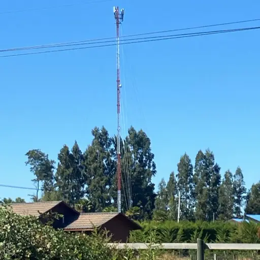 La antena está ubicada en el kilómetro 9, sector Villa Santa Clara de la ruta Q15. Según los vecinos, pese a estar a poca distancia de las casas, no entregaría el servicio. / Cedida
